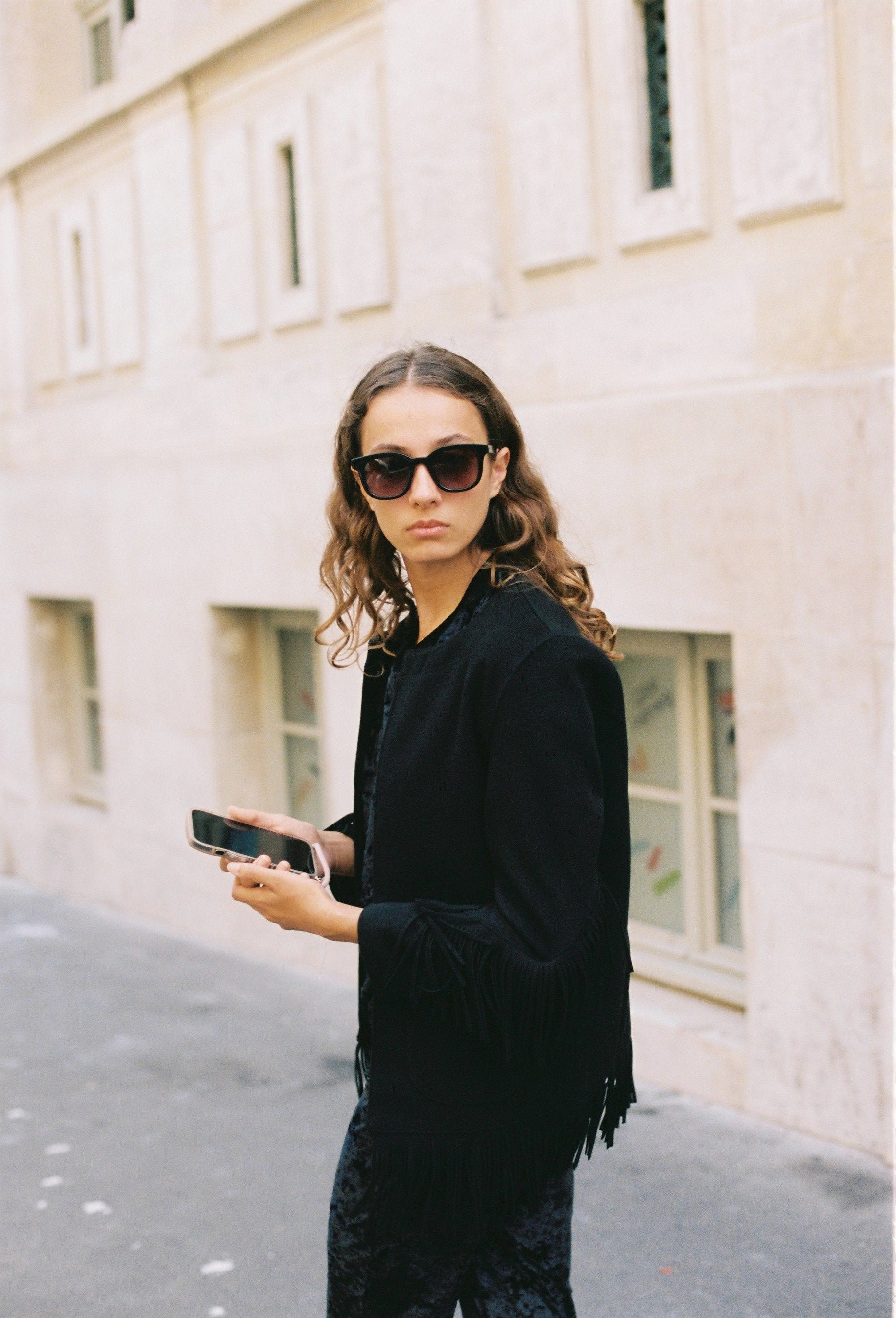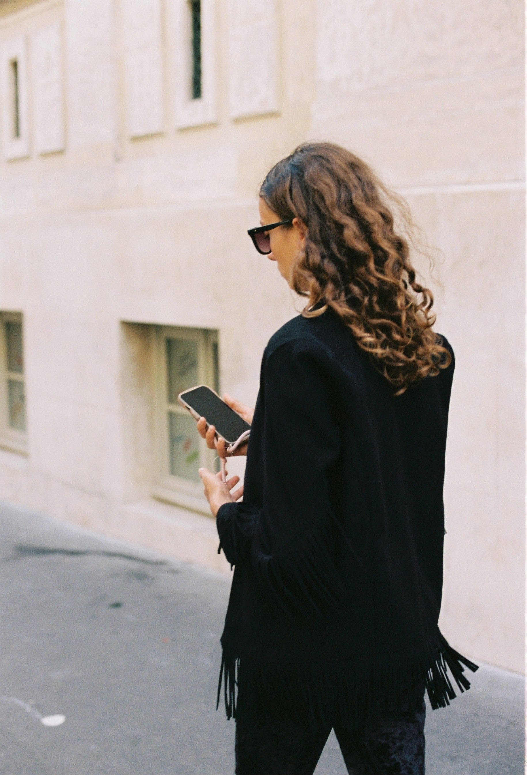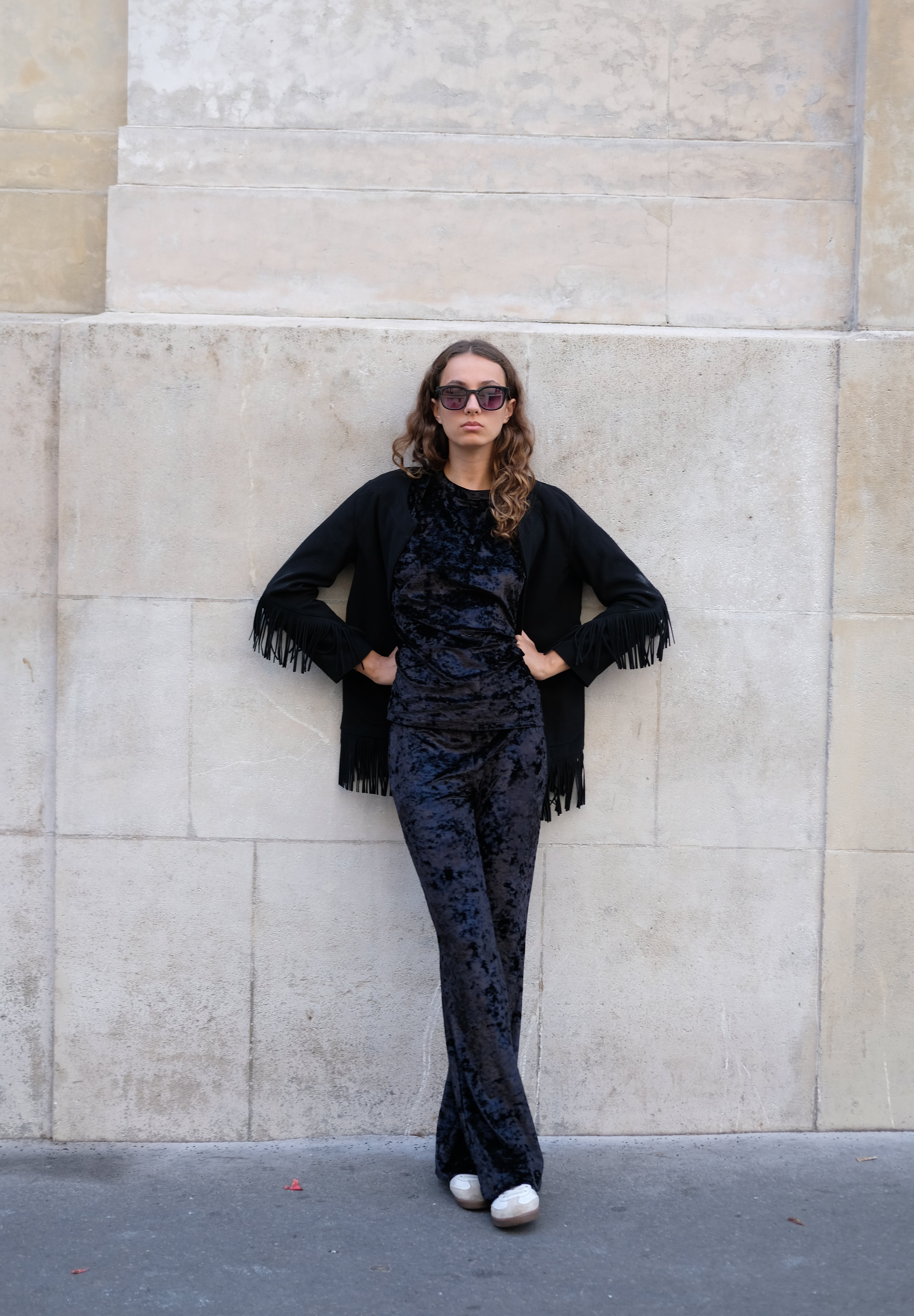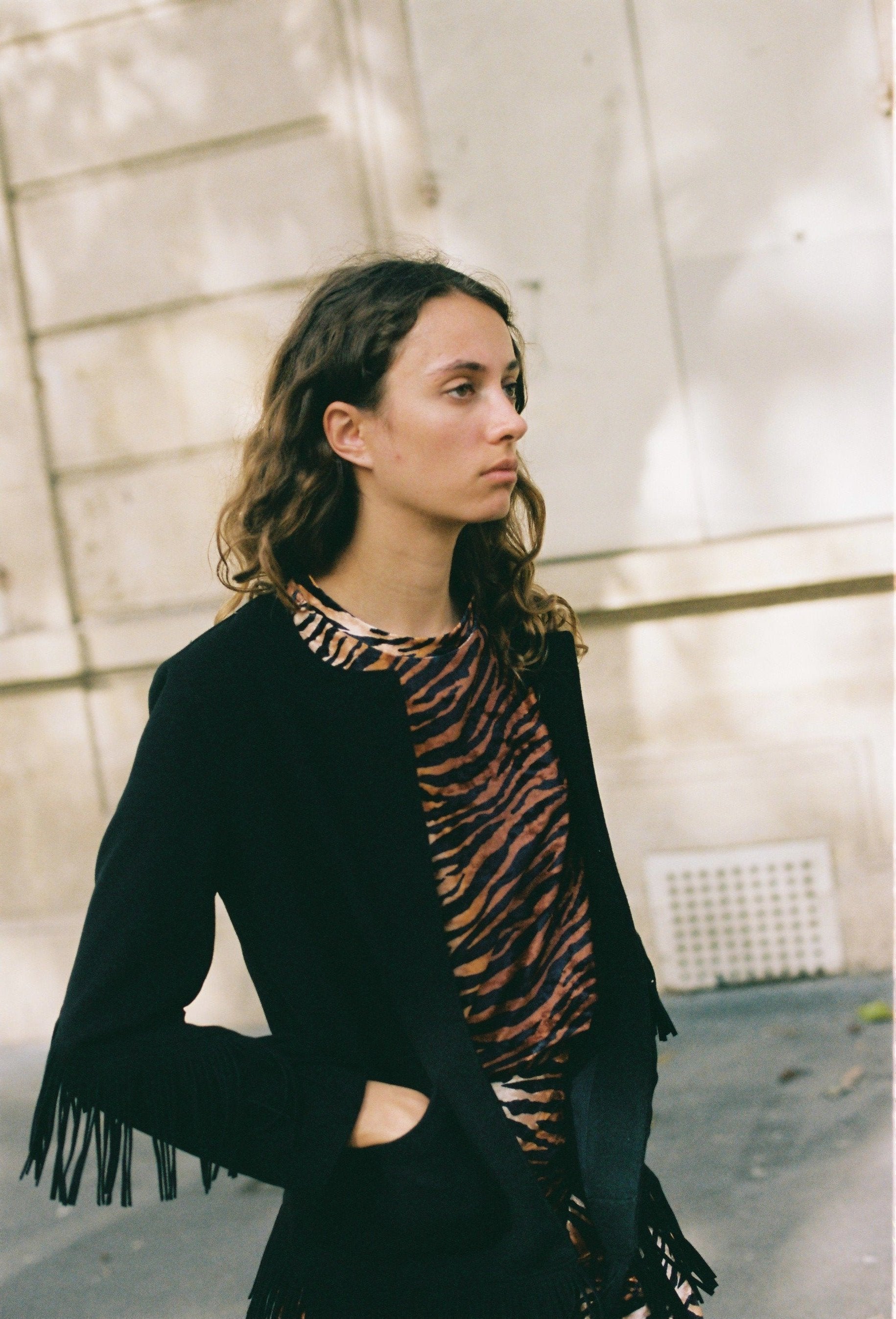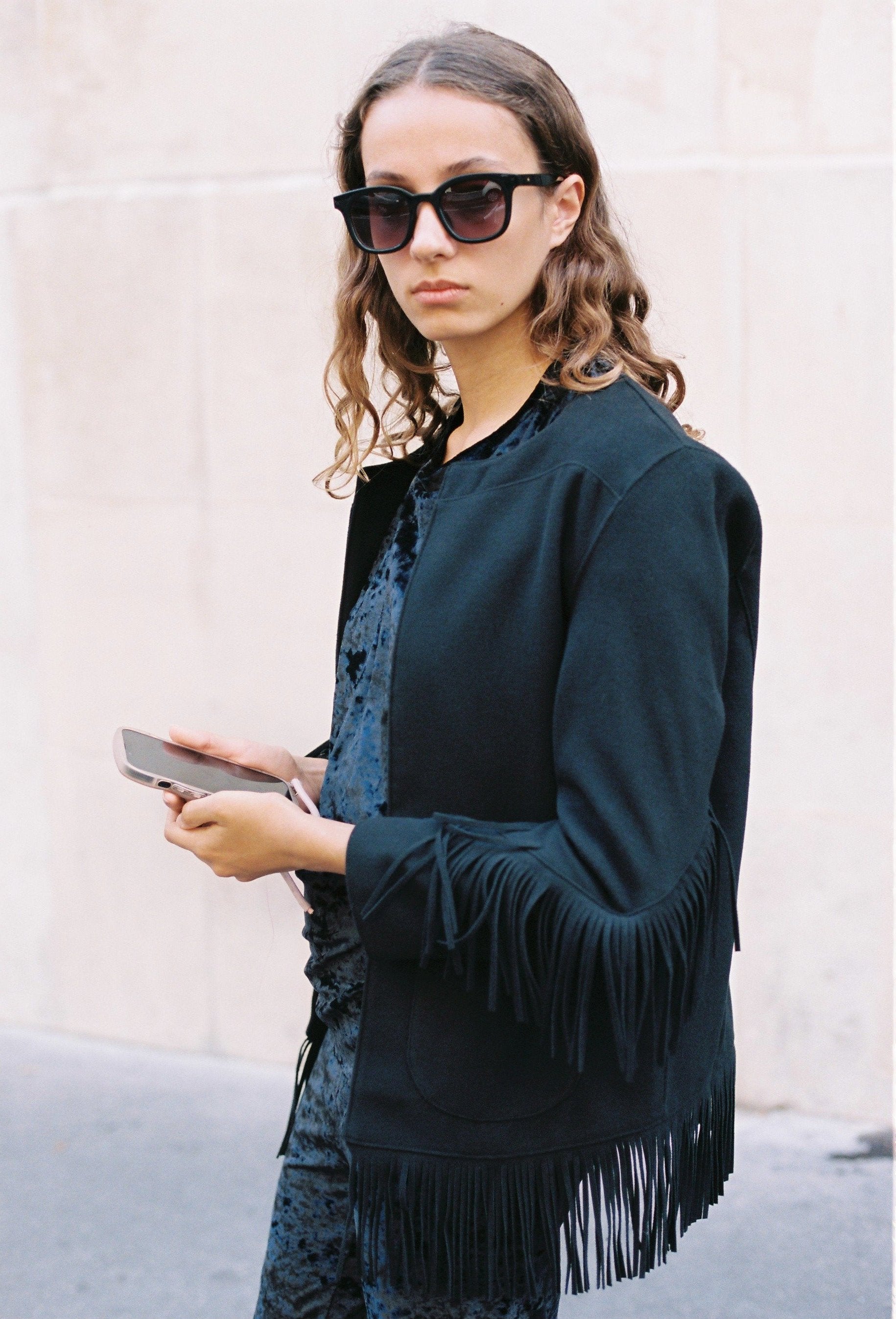 Veste droite à franges noires